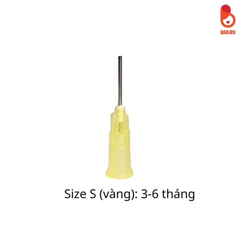 – Size S (màu vàng nhạt) cho bé từ 3-6 tháng, kích thước 0.9mm