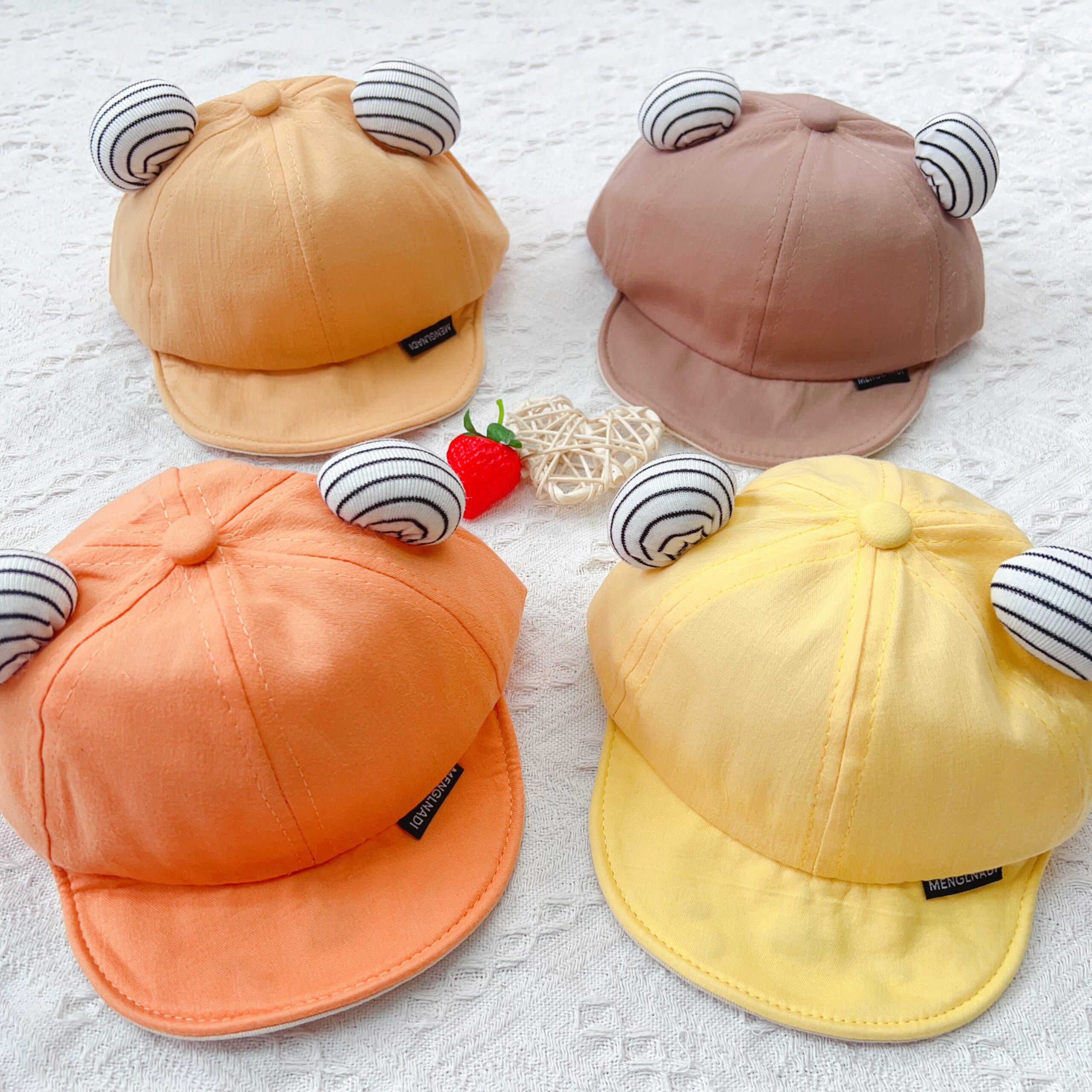 – Chất liệu mũ lưỡi trai tai kẻ: vải thô mềm. Chu vi mũ 43-46cm phù hợp cho bé từ 5m – 2y