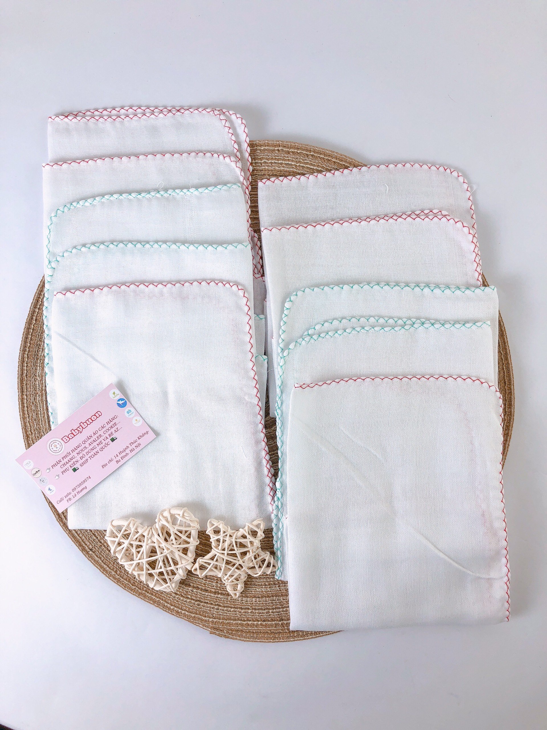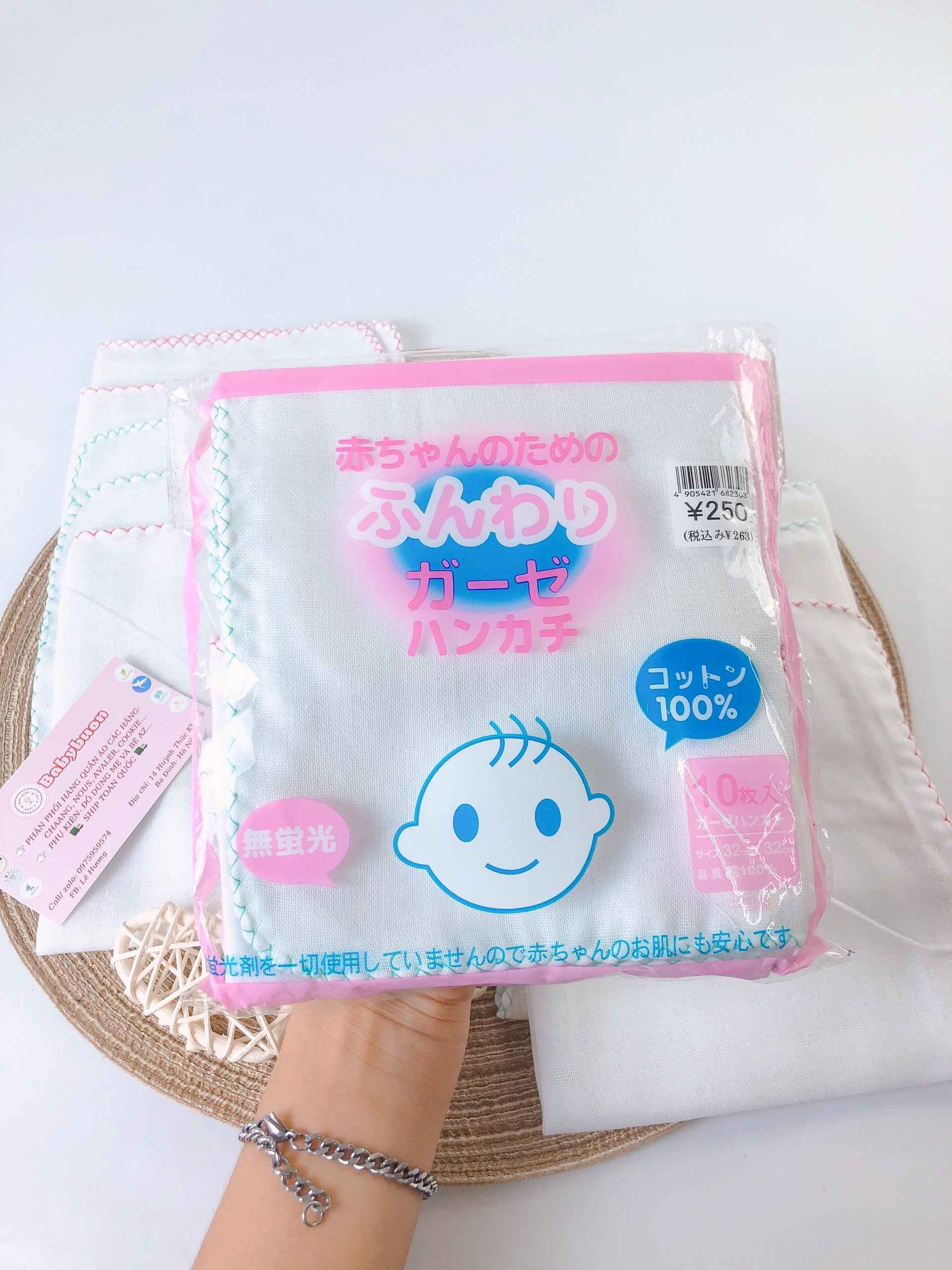 – Túi 10 khăn gồm nhiều họa tiết và màu sắc khác nhau cho mẹ có nhiều sự lựa chọn – Đường viền được bo chắc chắn giúp khăn không bị bung tuột khi sử dụng – Thích hợp cho cả bé trai và bé gái