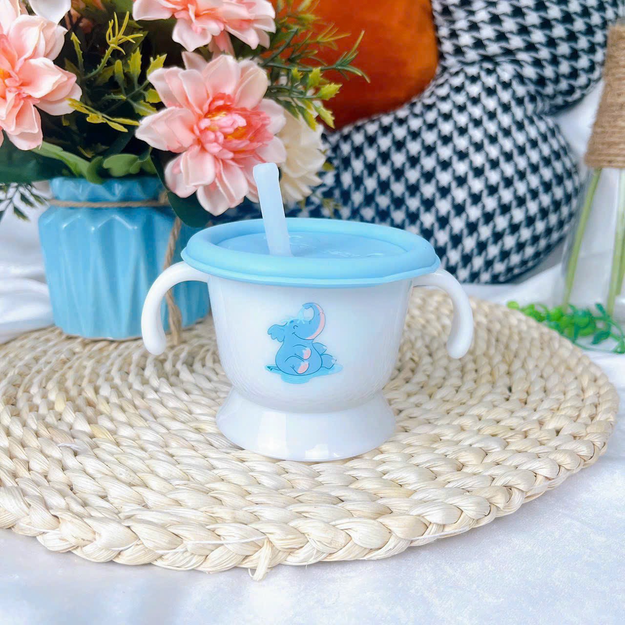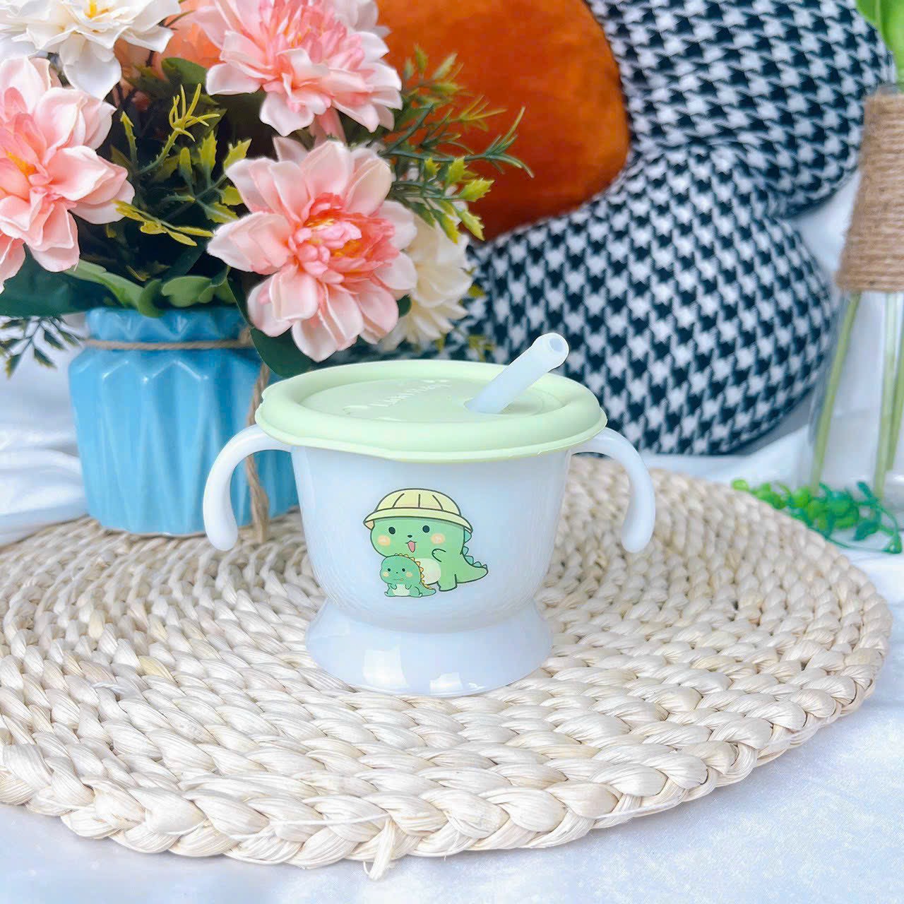 – Ống hút thiết kế chống sặc, phù hợp cho bé trong giai đoạn đầu tập uống nước.