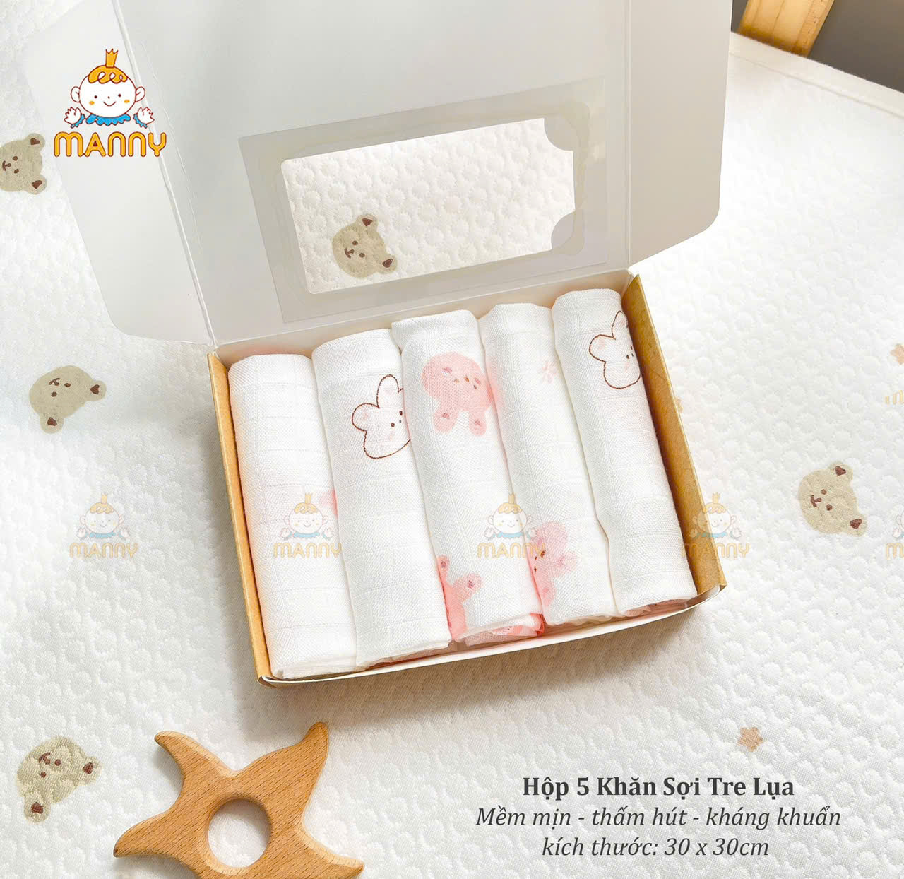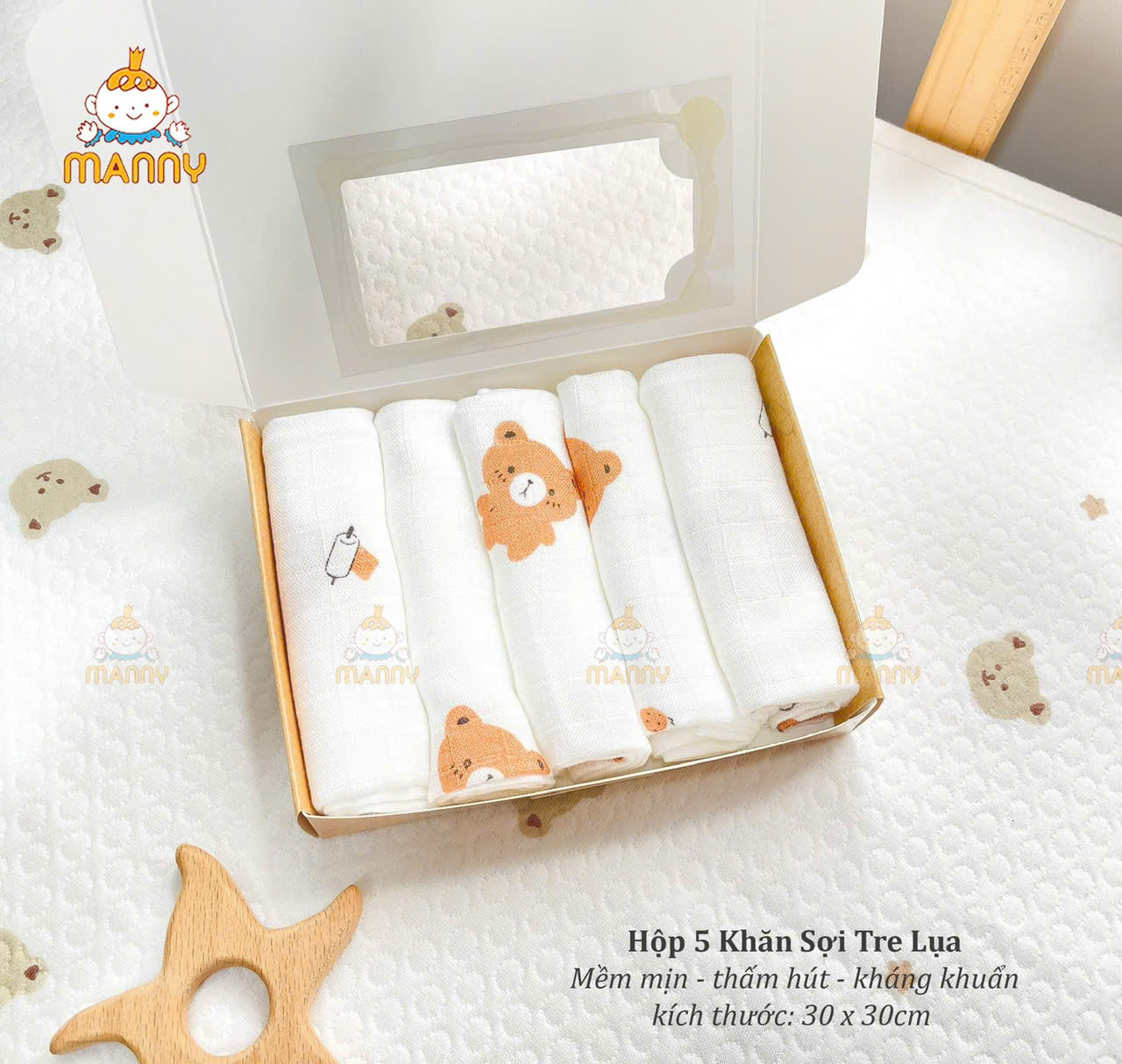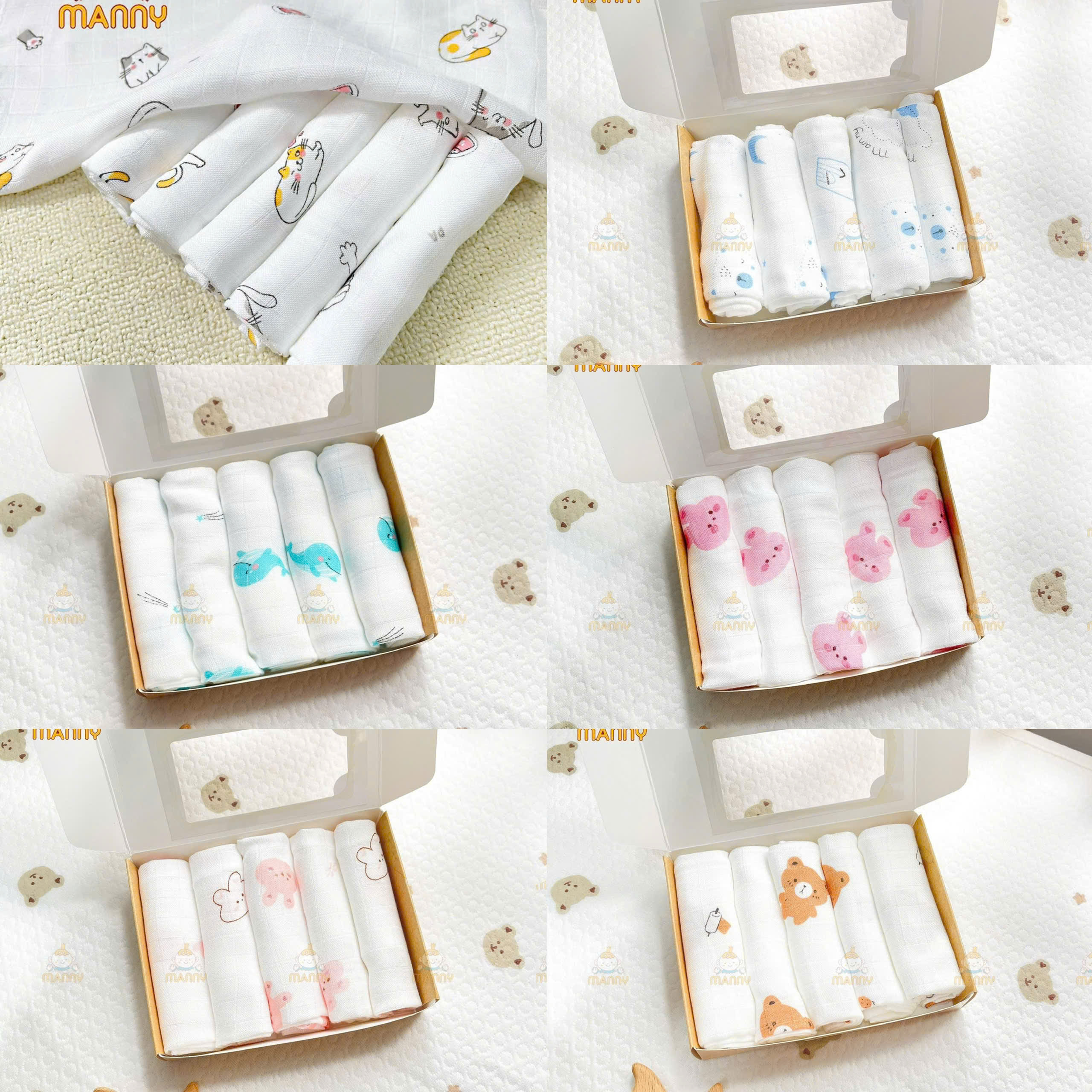 – Loại set 5 khăn hình chất liệu: 100% baboo organic