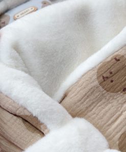 – Chất liệu: Lông thỏ cực mềm mịn, bé đeo rất thoải mái, giữ ấm tốt cho mùa thu, đông