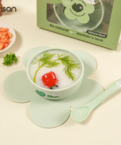 Set ăn dặm có thể chịu nhiệt từ -4. —> 250 độ C – Mẹ có thể tráng qua nước sôi trước khi cho bé sử dụng