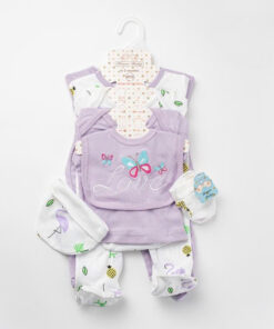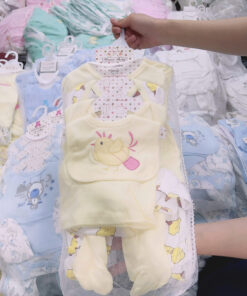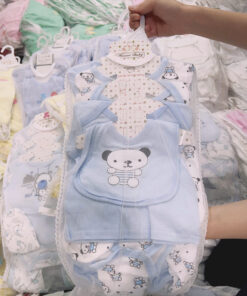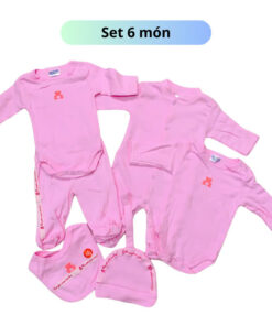 – Set 6 bao gồm: 2 body đùi, 1 body dài, 1 yếm, 1 mũ, 1 quần rời liền tất