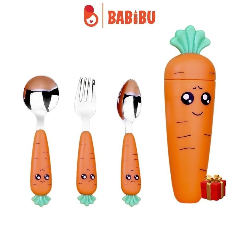 – Chất liệu: inox SUS 304 an toàn, cán cầm silicon/ nhựa PP cho bé