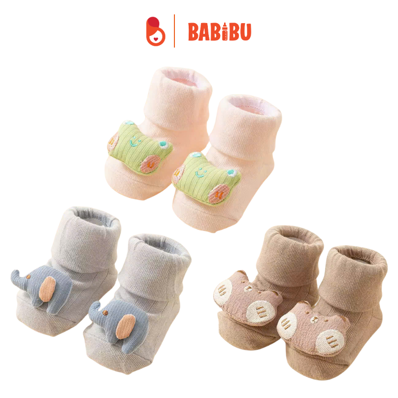 Tất Giày Cho Bé Cổ Cao, Chất Liệu Cotton Mềm Họa Tiết Thú 3D Dễ Thương, Co Giãn Thoáng Khí, Giữ Ấm Cho Bé Tập Đi