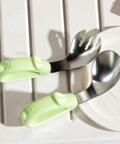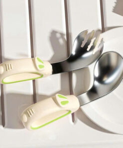 – Bé cần thìa dĩa uốn cong để có thể dễ dàng đưa đồ ăn vào miệng mà không bị rơi vãi