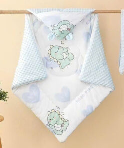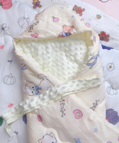 – Chất liệu: 2 lớp, mặt trước lớp vải xô. Mặt sau: lông mịn hạt đậu 100% sợi tổng hợp, tạo cảm giác thoải mái khi tiếp xúc với da bé. Giống như sự masage của mẹ