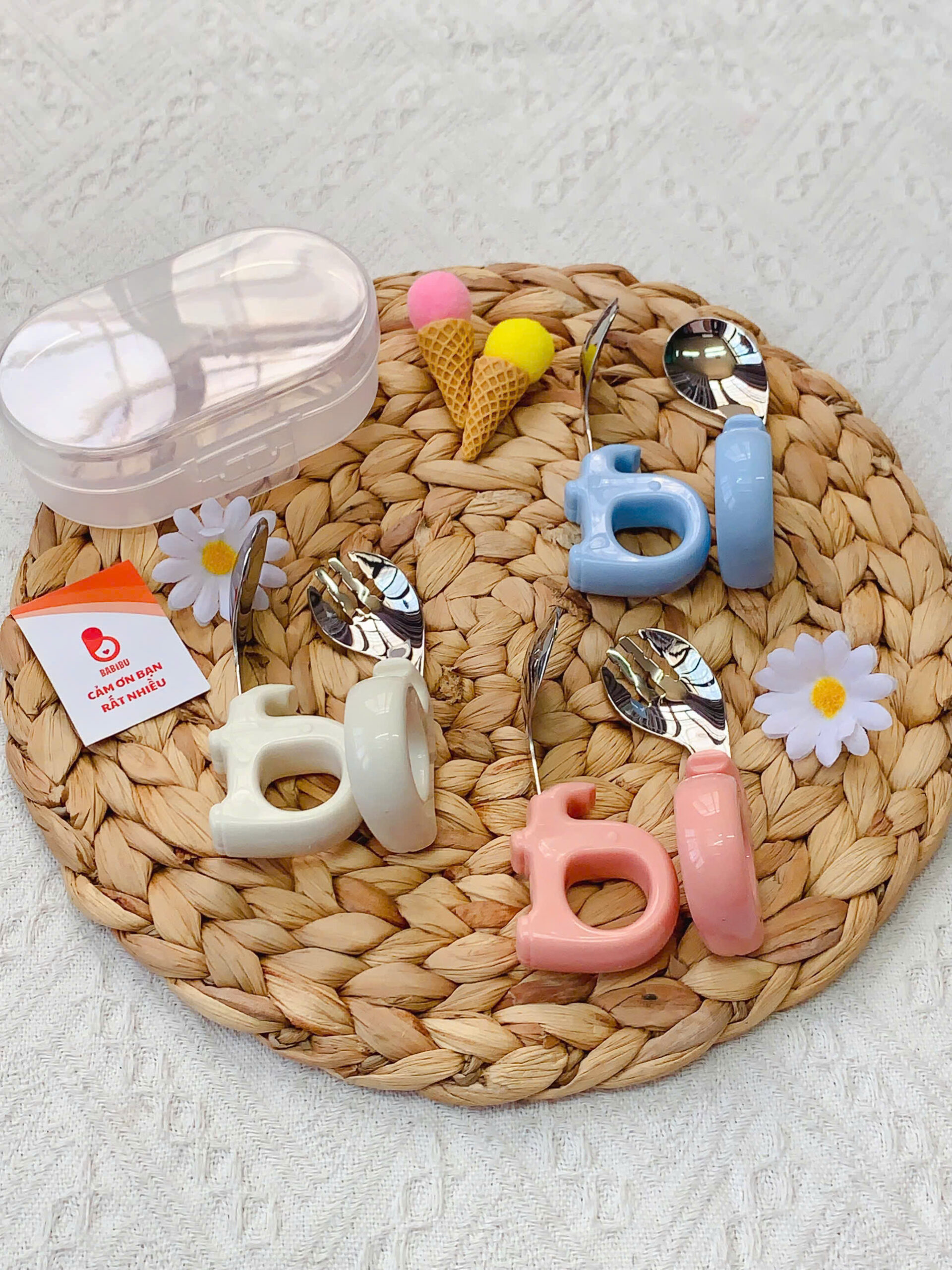 – Set thìa dĩa tập xúc là lựa chọn tối ưu, giúp bé dễ dàng xúc đưa thức ăn vào miệng và an toàn tuyệt đối.